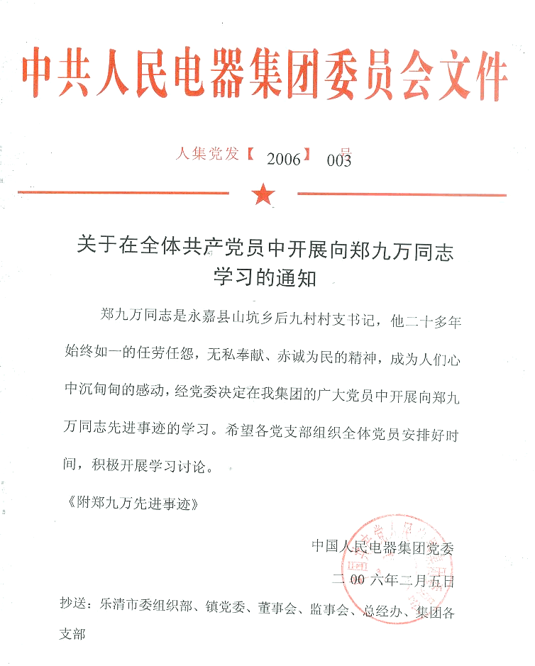 關(guān)于在全體共產(chǎn)黨員中開展向鄭九萬(wàn)同志學(xué)習(xí)的通知